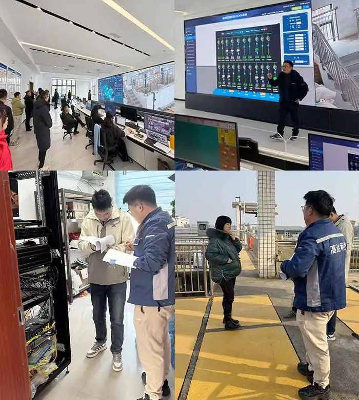 (智慧污水信息化成规模建设提升项目验收现场场景:清溪污水厂控制中心(上);凯江污水厂(下))