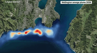 南海岸的多个海滩和礁石区,已连续两周承受大量人类排泄物和污染物冲击。遥感图像勾勒出人类排泄物随着潮汐,在惠灵顿南岸到处扩散。